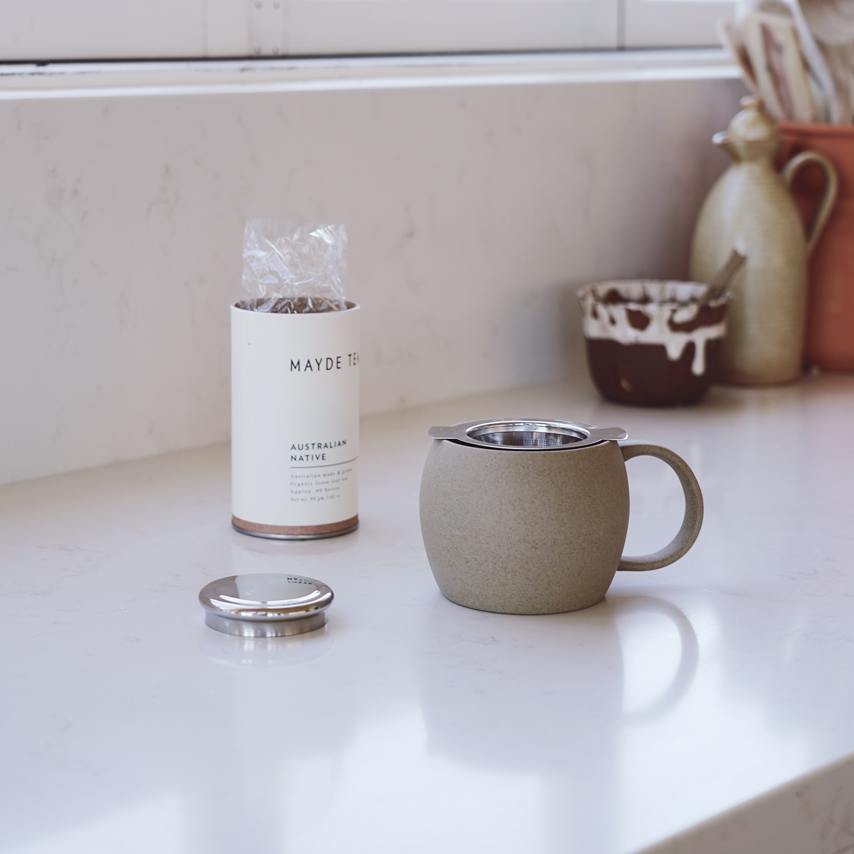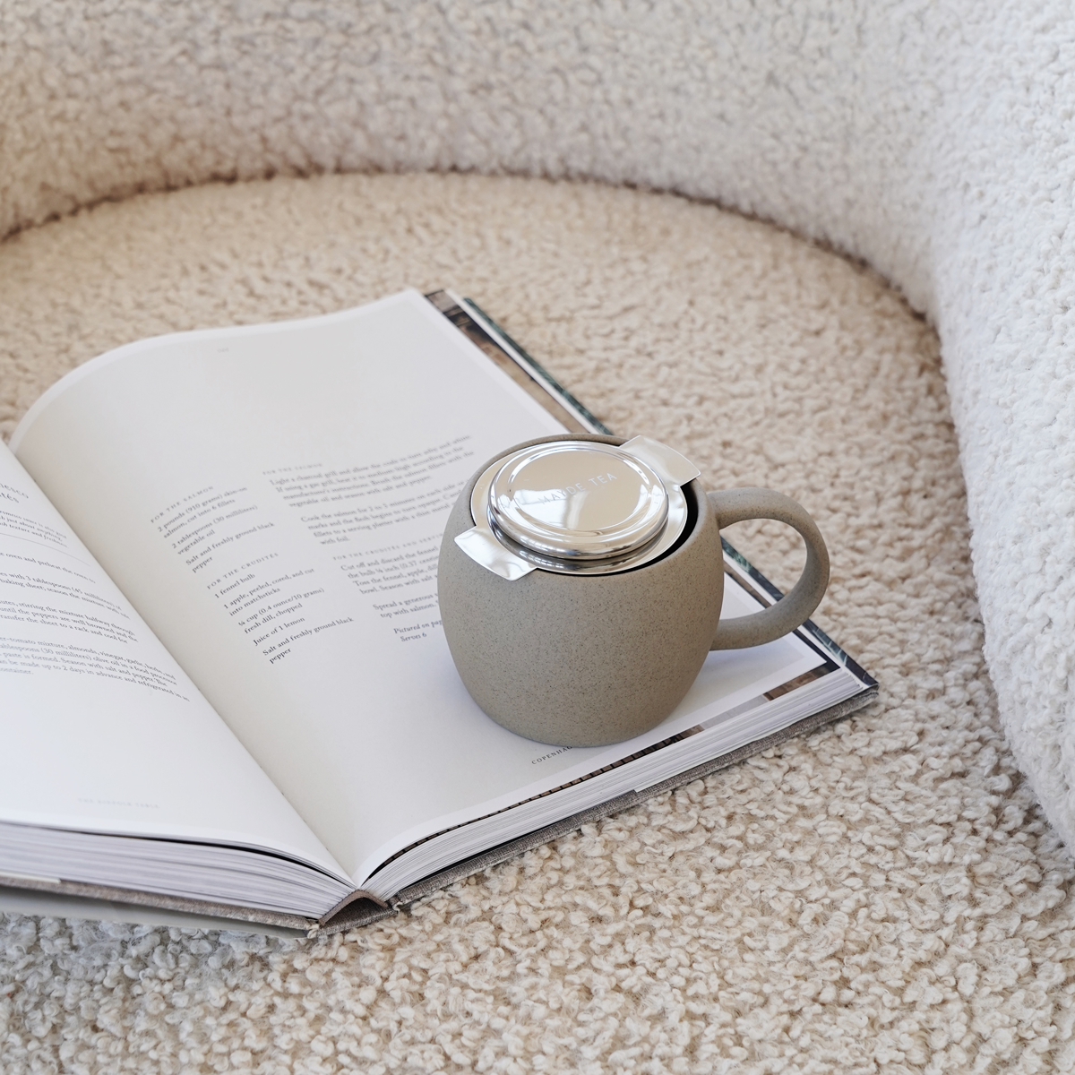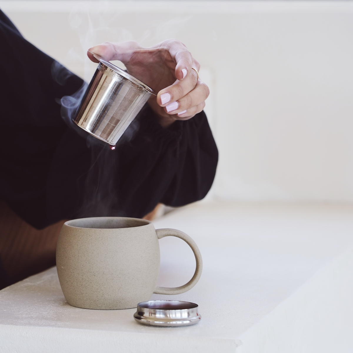 Place your Mayde Tea infuser inside your mug and remove the lid.